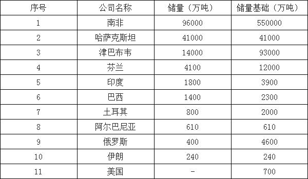 世界鉻鐵礦儲量和儲量基礎(商品級礦石)