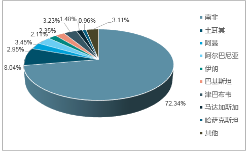 2017年我國鉻礦進口數量國別占比