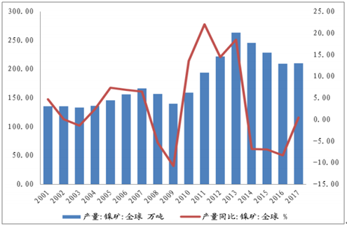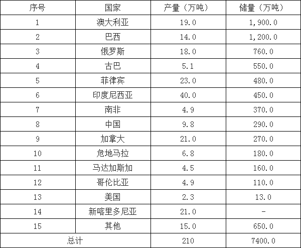 2017年世界鎳礦產量及儲量