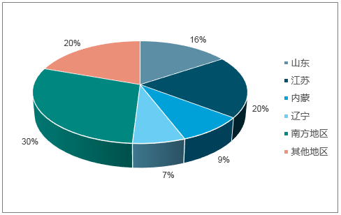 鎳鐵作為鎳礦的替代品,具有提高鋼的抗彎強度和硬度,并降低不銹鋼冶煉成本的優點。在我國,鎳鐵行業起步較晚,但發展迅速,2012年我國鎳鐵產能達到800萬噸,并在往后幾年快速擴張,在2017年鎳鐵產能達4538.17萬噸,在這6年間年均增長率達42.14%。產能的分布主要在江蘇、山東及南方地區,分別占比20%、16%和30%。