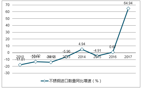2009-2017年我國不銹鋼進口數量同比變化(%)