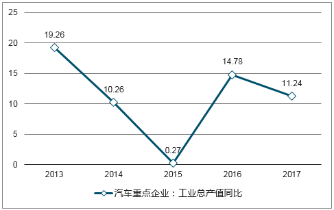汽車重點企業工業總產值同比變化(%)